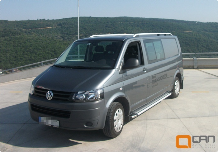 Поздовжні дуги рейлінги Erkul Skyport для Volkswagen T5/T6. Легко монтуються в штатні місця вашої машини. Використовуються для кріплення багажника і перевезення вантажів різного класу, наприклад, вантажних боксів, велосипедів або сноубордів.