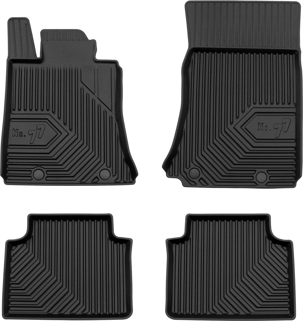 Килими салону Frogum №77 виготовлені з матеріалу TPE (термопластична гума), яка має властивості гуми (еластичність, гнучкість), але в той же час стійка до агресивних рідин, мастильних матеріалів та олій. Завдяки використанню матеріалів найвищої якості килимки відрізняються безпрецедентною стійкістю до витирання та зношування.