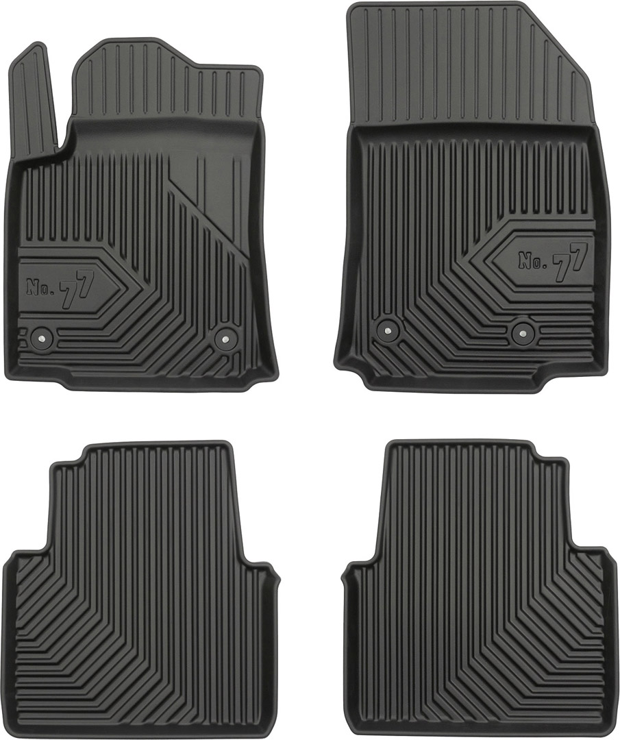 Килими салону Frogum №77 виготовлені з матеріалу TPE (термопластична гума), яка має властивості гуми (еластичність, гнучкість), але в той же час стійка до агресивних рідин, мастильних матеріалів та олій. Завдяки використанню матеріалів найвищої якості килимки відрізняються безпрецедентною стійкістю до витирання та зношування.