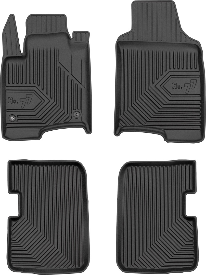 Килими салону Frogum №77 виготовлені з матеріалу TPE (термопластична гума), яка має властивості гуми (еластичність, гнучкість), але в той же час стійка до агресивних рідин, мастильних матеріалів та олій. Завдяки використанню матеріалів найвищої якості килимки відрізняються безпрецедентною стійкістю до витирання та зношування.