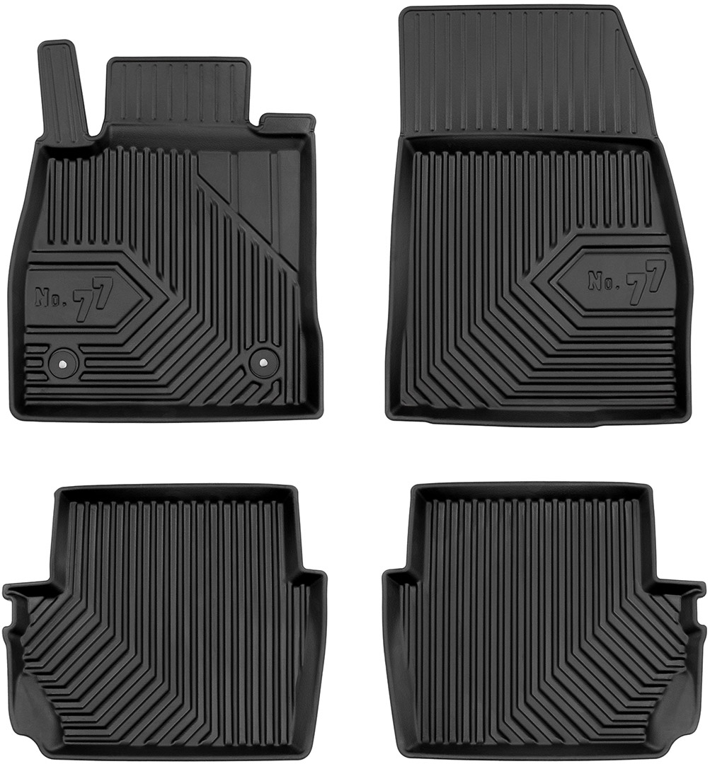Килими салону Frogum №77 виготовлені з матеріалу TPE (термопластична гума), яка має властивості гуми (еластичність, гнучкість), але в той же час стійка до агресивних рідин, мастильних матеріалів та олій. Завдяки використанню матеріалів найвищої якості килимки відрізняються безпрецедентною стійкістю до витирання та зношування.