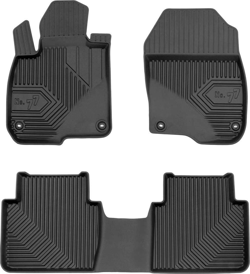 Килими салону Frogum №77 виготовлені з матеріалу TPE (термопластична гума), яка має властивості гуми (еластичність, гнучкість), але в той же час стійка до агресивних рідин, мастильних матеріалів та олій. Завдяки використанню матеріалів найвищої якості килимки відрізняються безпрецедентною стійкістю до витирання та зношування.