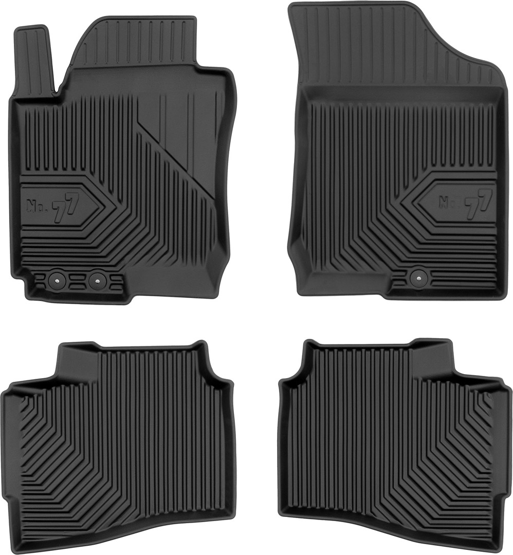 Килими салону Frogum №77 виготовлені з матеріалу TPE (термопластична гума), яка має властивості гуми (еластичність, гнучкість), але в той же час стійка до агресивних рідин, мастильних матеріалів та олій. Завдяки використанню матеріалів найвищої якості килимки відрізняються безпрецедентною стійкістю до витирання та зношування.