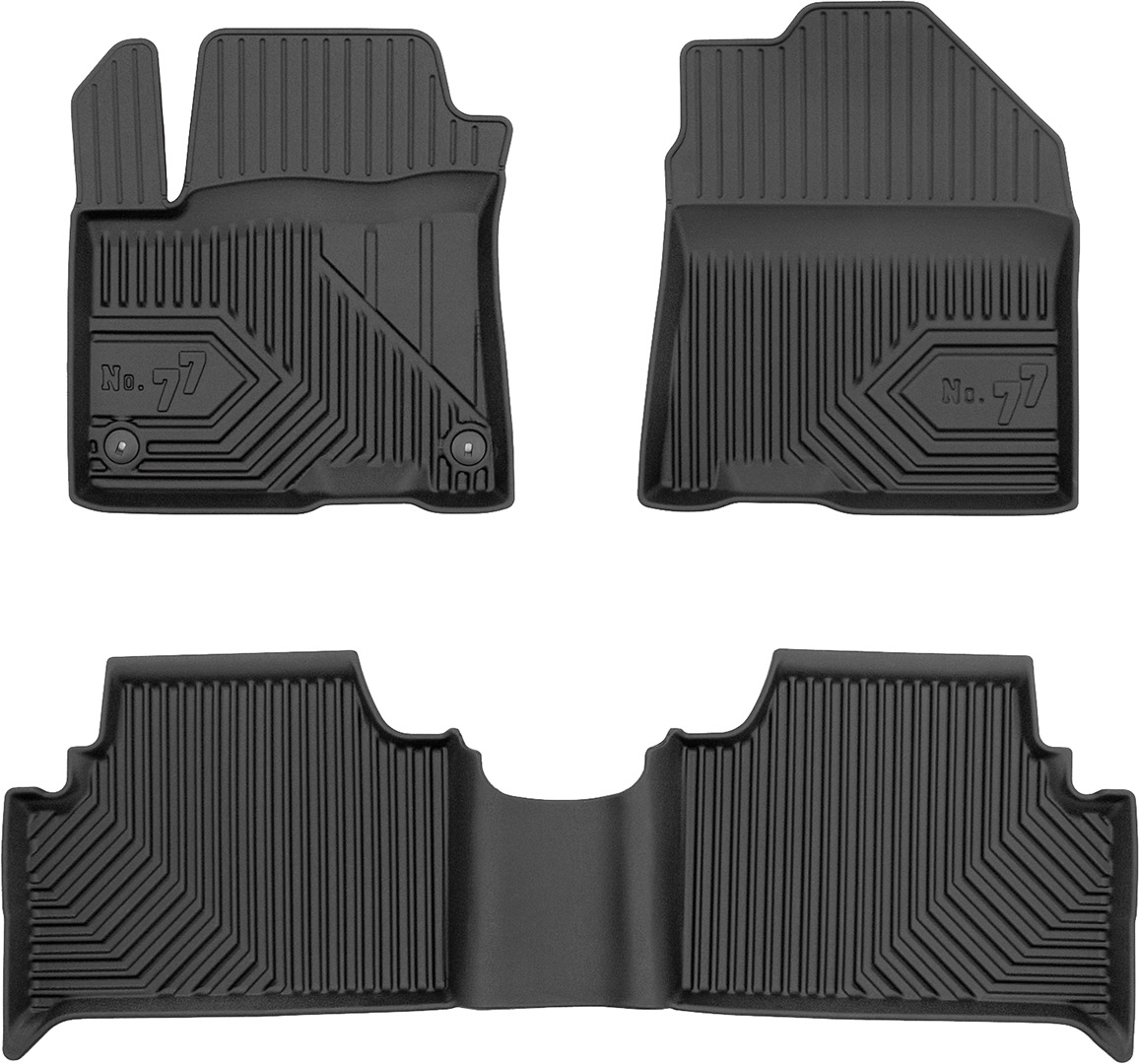 Килими салону Frogum №77 виготовлені з матеріалу TPE (термопластична гума), яка має властивості гуми (еластичність, гнучкість), але в той же час стійка до агресивних рідин, мастильних матеріалів та олій. Завдяки використанню матеріалів найвищої якості килимки відрізняються безпрецедентною стійкістю до витирання та зношування.