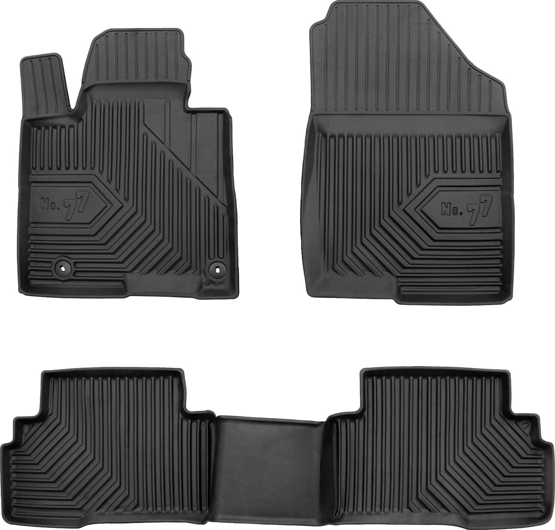 Килими салону Frogum №77 виготовлені з матеріалу TPE (термопластична гума), яка має властивості гуми (еластичність, гнучкість), але в той же час стійка до агресивних рідин, мастильних матеріалів та олій. Завдяки використанню матеріалів найвищої якості килимки відрізняються безпрецедентною стійкістю до витирання та зношування.