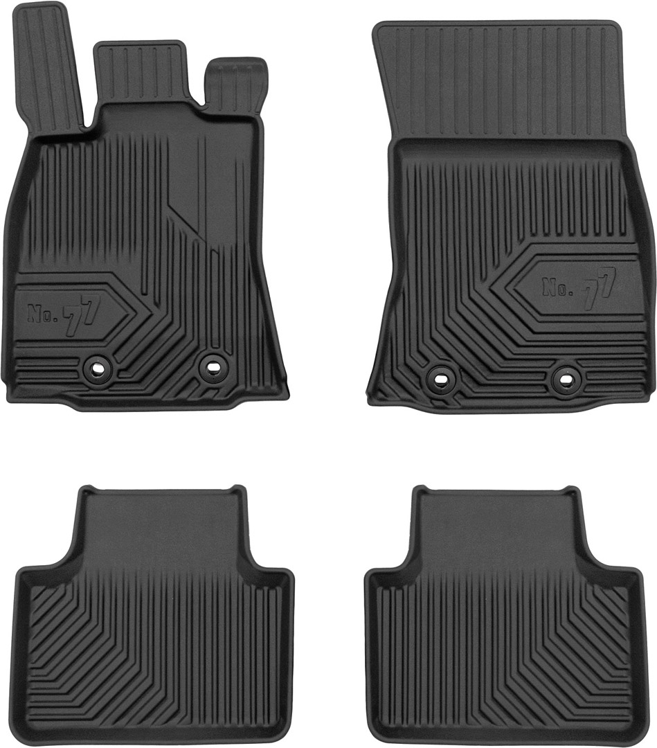 Килими салону Frogum №77 виготовлені з матеріалу TPE (термопластична гума), яка має властивості гуми (еластичність, гнучкість), але в той же час стійка до агресивних рідин, мастильних матеріалів та олій. Завдяки використанню матеріалів найвищої якості килимки відрізняються безпрецедентною стійкістю до витирання та зношування.