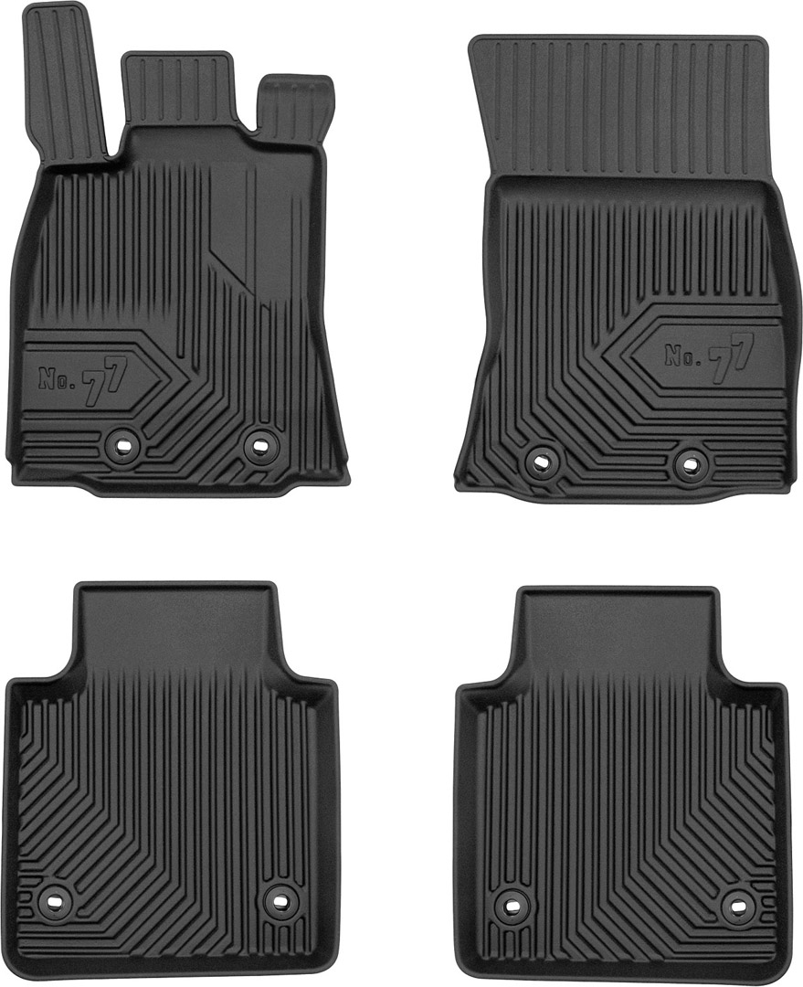 Килими салону Frogum №77 виготовлені з матеріалу TPE (термопластична гума), яка має властивості гуми (еластичність, гнучкість), але в той же час стійка до агресивних рідин, мастильних матеріалів та олій. Завдяки використанню матеріалів найвищої якості килимки відрізняються безпрецедентною стійкістю до витирання та зношування.