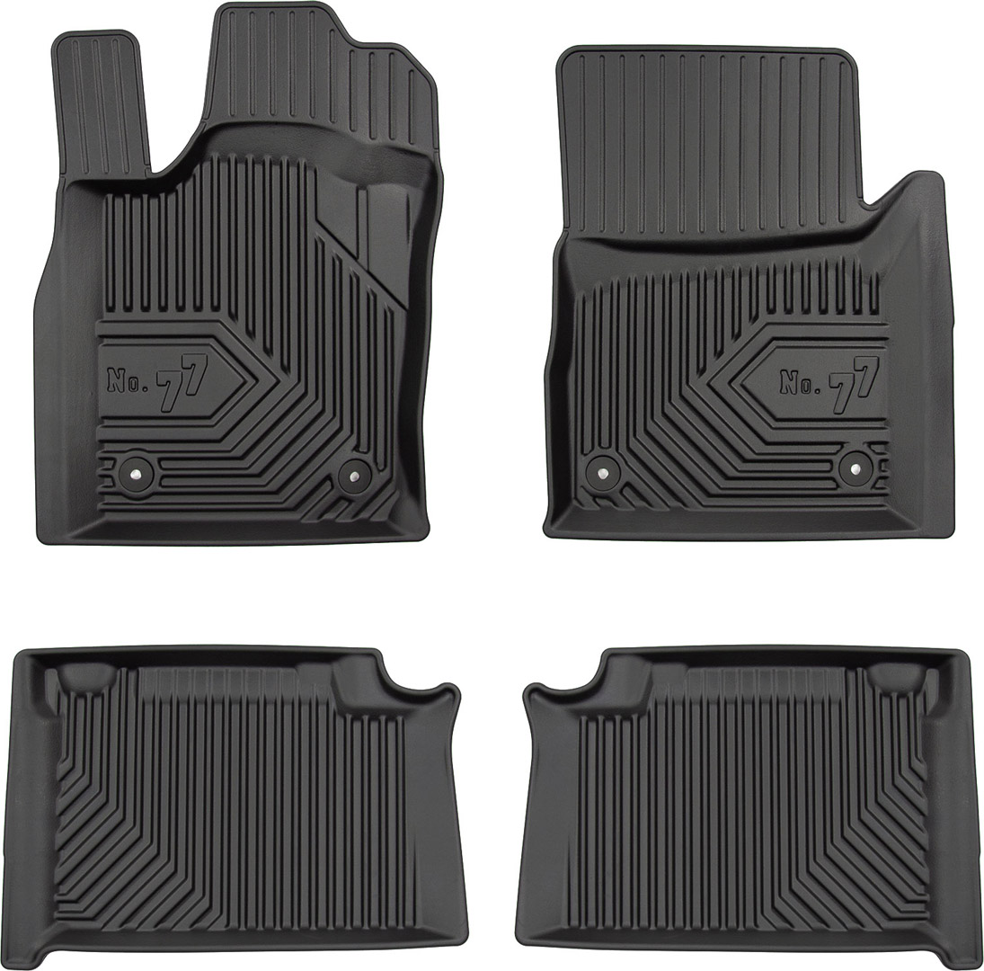 Килими салону Frogum №77 виготовлені з матеріалу TPE (термопластична гума), яка має властивості гуми (еластичність, гнучкість), але в той же час стійка до агресивних рідин, мастильних матеріалів та олій. Завдяки використанню матеріалів найвищої якості килимки відрізняються безпрецедентною стійкістю до витирання та зношування.