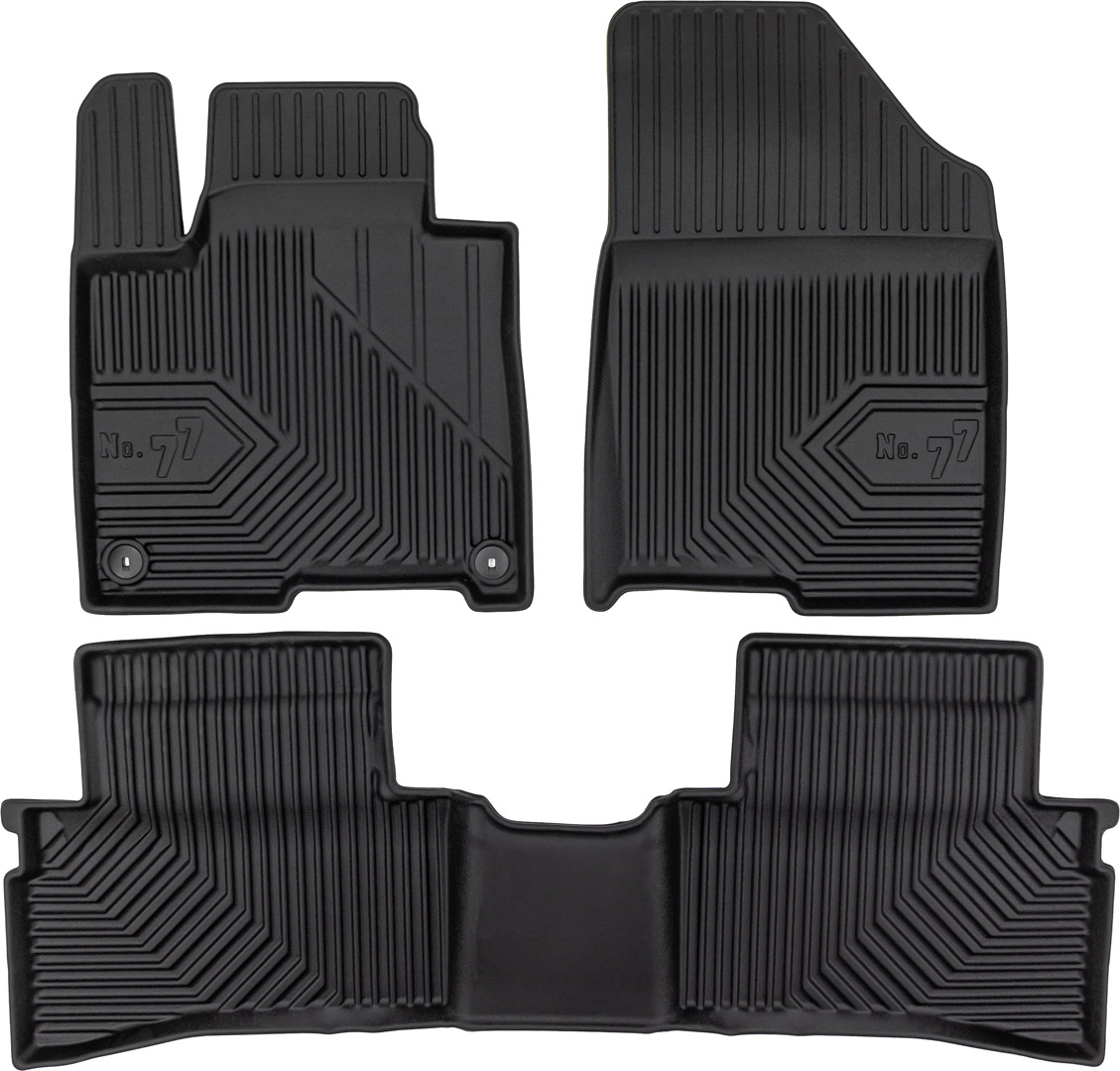 Килими салону Frogum №77 виготовлені з матеріалу TPE (термопластична гума), яка має властивості гуми (еластичність, гнучкість), але в той же час стійка до агресивних рідин, мастильних матеріалів та олій. Завдяки використанню матеріалів найвищої якості килимки відрізняються безпрецедентною стійкістю до витирання та зношування.