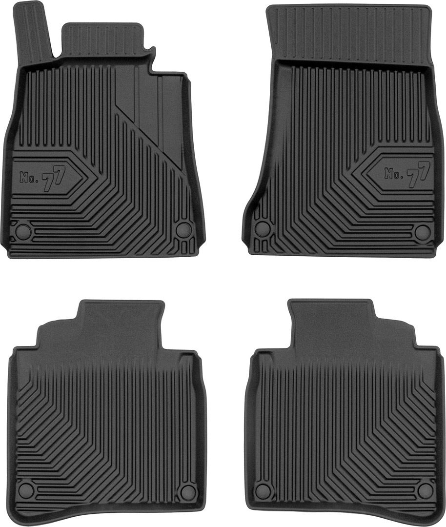 Килими салону Frogum №77 виготовлені з матеріалу TPE (термопластична гума), яка має властивості гуми (еластичність, гнучкість), але в той же час стійка до агресивних рідин, мастильних матеріалів та олій. Завдяки використанню матеріалів найвищої якості килимки відрізняються безпрецедентною стійкістю до витирання та зношування.