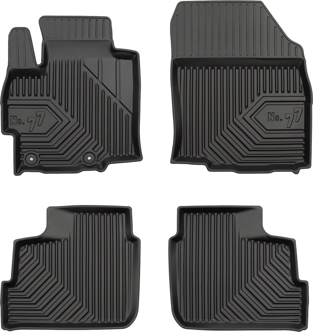 Килими салону Frogum №77 виготовлені з матеріалу TPE (термопластична гума), яка має властивості гуми (еластичність, гнучкість), але в той же час стійка до агресивних рідин, мастильних матеріалів та олій. Завдяки використанню матеріалів найвищої якості килимки відрізняються безпрецедентною стійкістю до витирання та зношування.