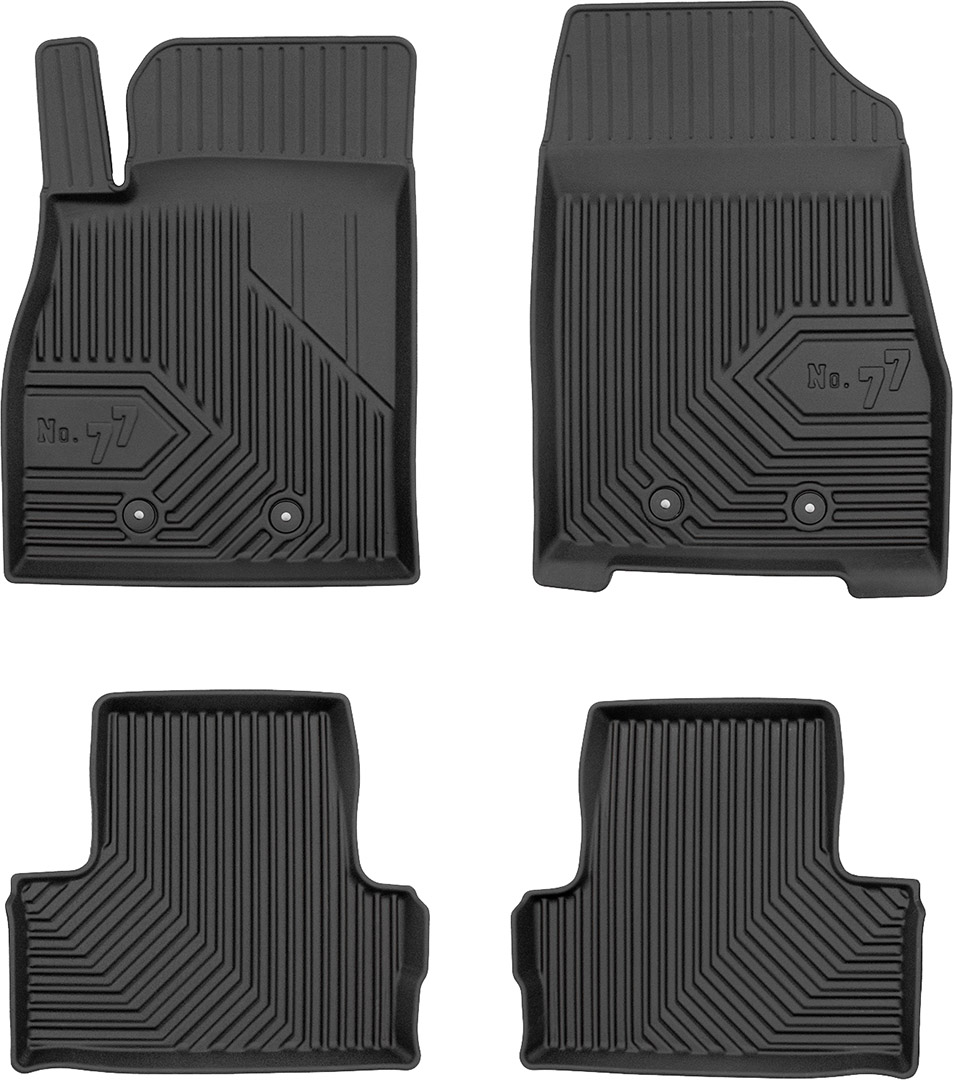 Килими салону Frogum №77 виготовлені з матеріалу TPE (термопластична гума), яка має властивості гуми (еластичність, гнучкість), але в той же час стійка до агресивних рідин, мастильних матеріалів та олій. Завдяки використанню матеріалів найвищої якості килимки відрізняються безпрецедентною стійкістю до витирання та зношування.