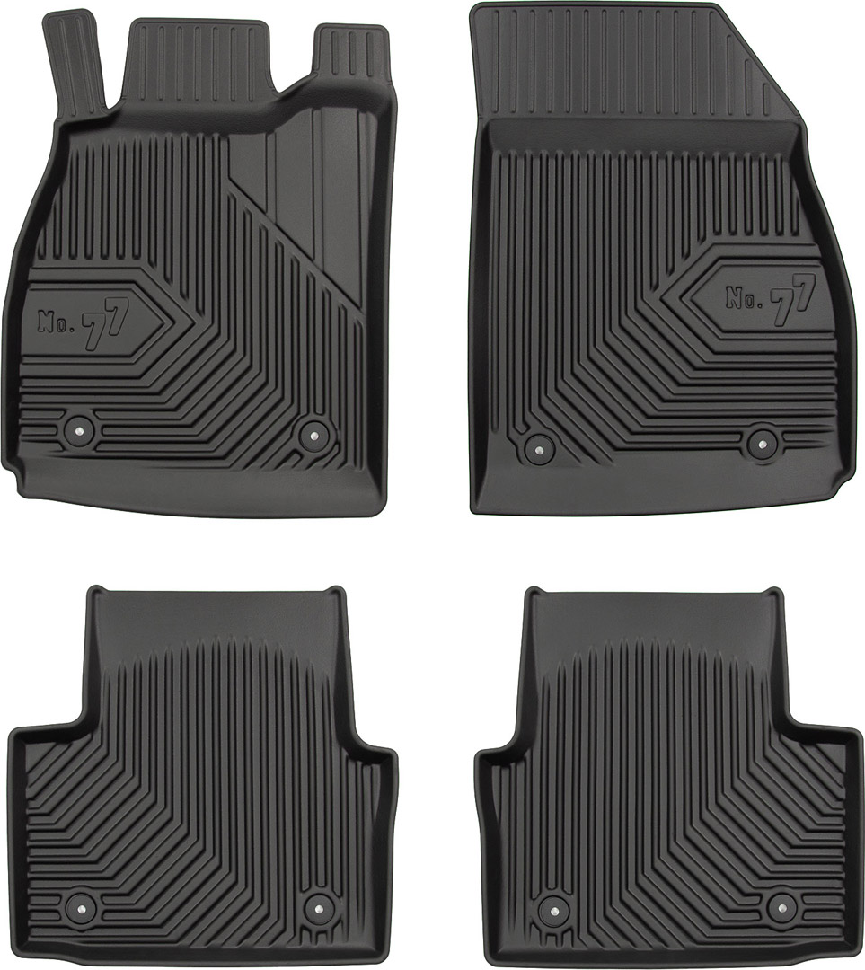 Килими салону Frogum №77 виготовлені з матеріалу TPE (термопластична гума), яка має властивості гуми (еластичність, гнучкість), але в той же час стійка до агресивних рідин, мастильних матеріалів та олій. Завдяки використанню матеріалів найвищої якості килимки відрізняються безпрецедентною стійкістю до витирання та зношування.