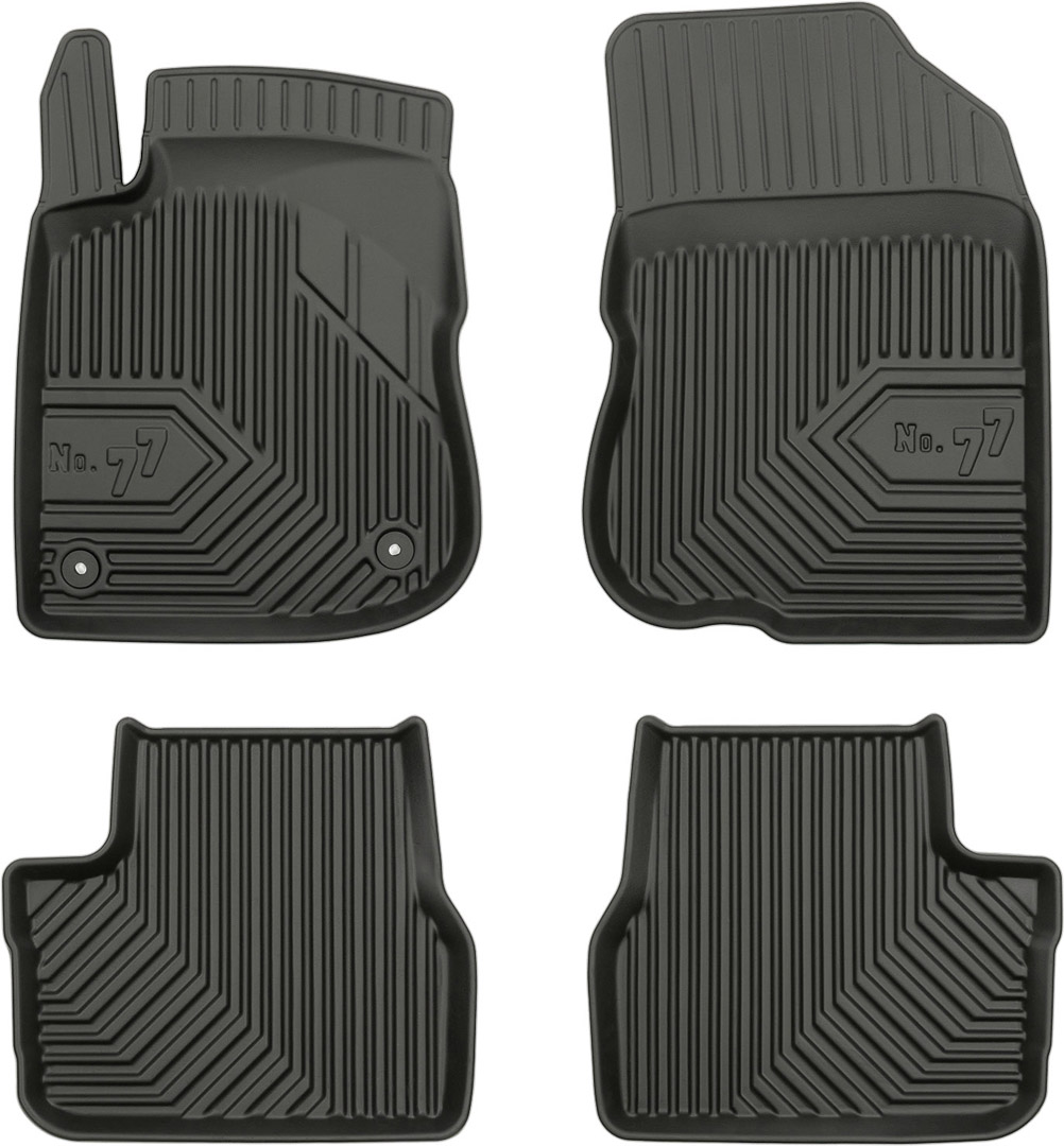 Килими салону Frogum №77 виготовлені з матеріалу TPE (термопластична гума), яка має властивості гуми (еластичність, гнучкість), але в той же час стійка до агресивних рідин, мастильних матеріалів та олій. Завдяки використанню матеріалів найвищої якості килимки відрізняються безпрецедентною стійкістю до витирання та зношування.