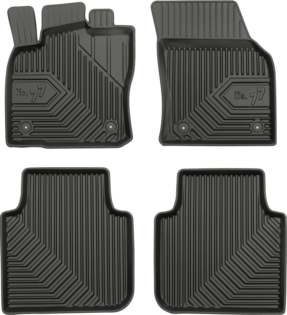 Килими салону Frogum №77 виготовлені з матеріалу TPE (термопластична гума), яка має властивості гуми (еластичність, гнучкість), але в той же час стійка до агресивних рідин, мастильних матеріалів та олій. Завдяки використанню матеріалів найвищої якості килимки відрізняються безпрецедентною стійкістю до витирання та зношування.