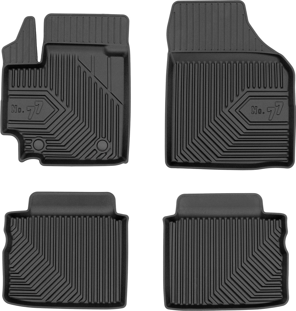 Килими салону Frogum №77 виготовлені з матеріалу TPE (термопластична гума), яка має властивості гуми (еластичність, гнучкість), але в той же час стійка до агресивних рідин, мастильних матеріалів та олій. Завдяки використанню матеріалів найвищої якості килимки відрізняються безпрецедентною стійкістю до витирання та зношування.