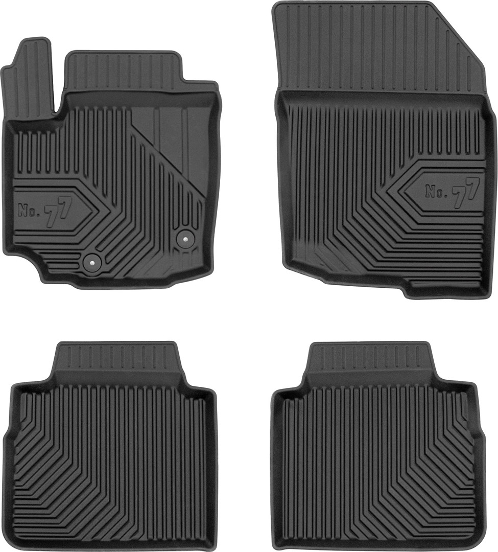 Килими салону Frogum №77 виготовлені з матеріалу TPE (термопластична гума), яка має властивості гуми (еластичність, гнучкість), але в той же час стійка до агресивних рідин, мастильних матеріалів та олій. Завдяки використанню матеріалів найвищої якості килимки відрізняються безпрецедентною стійкістю до витирання та зношування.