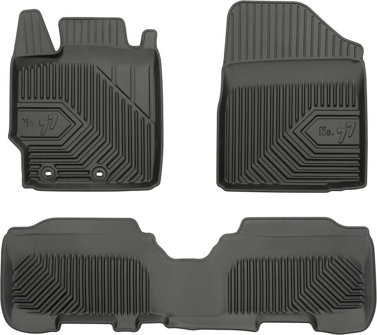 Килими салону Frogum №77 виготовлені з матеріалу TPE (термопластична гума), яка має властивості гуми (еластичність, гнучкість), але в той же час стійка до агресивних рідин, мастильних матеріалів та олій. Завдяки використанню матеріалів найвищої якості килимки відрізняються безпрецедентною стійкістю до витирання та зношування.