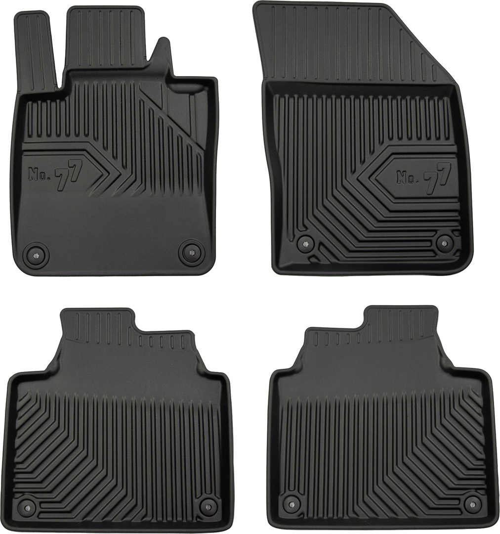 Килими салону Frogum №77 виготовлені з матеріалу TPE (термопластична гума), яка має властивості гуми (еластичність, гнучкість), але в той же час стійка до агресивних рідин, мастильних матеріалів та олій. Завдяки використанню матеріалів найвищої якості килимки відрізняються безпрецедентною стійкістю до витирання та зношування.