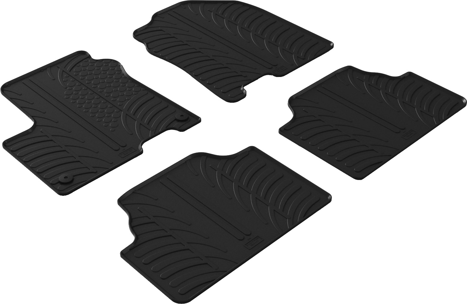 • Поверхня килимків має рельєфний малюнок у вигляді протектора шини, який дозволяє ефективно затримувати вологу та бруд у осередках.
