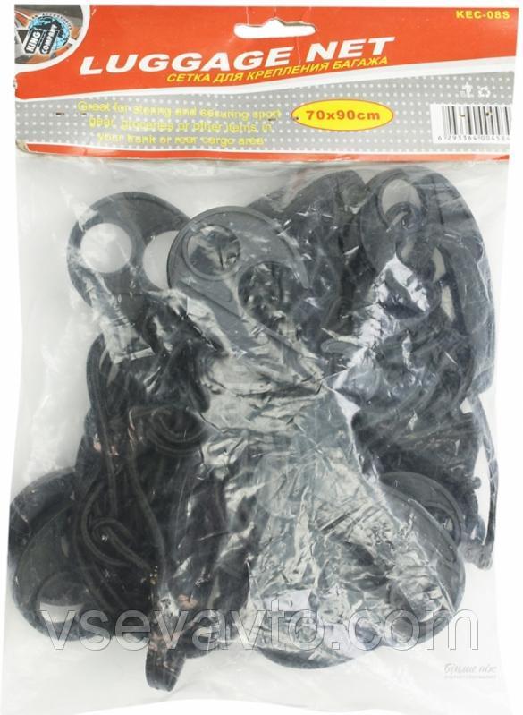 Розміри: довжина 70 см, розтягується до 100см, ширина 90 – 120см. Легка у використанні, має 12 гачків, що знімаються, завдяки якому її можна легко закріпити за будь-які кріпильні місця в багажнику.