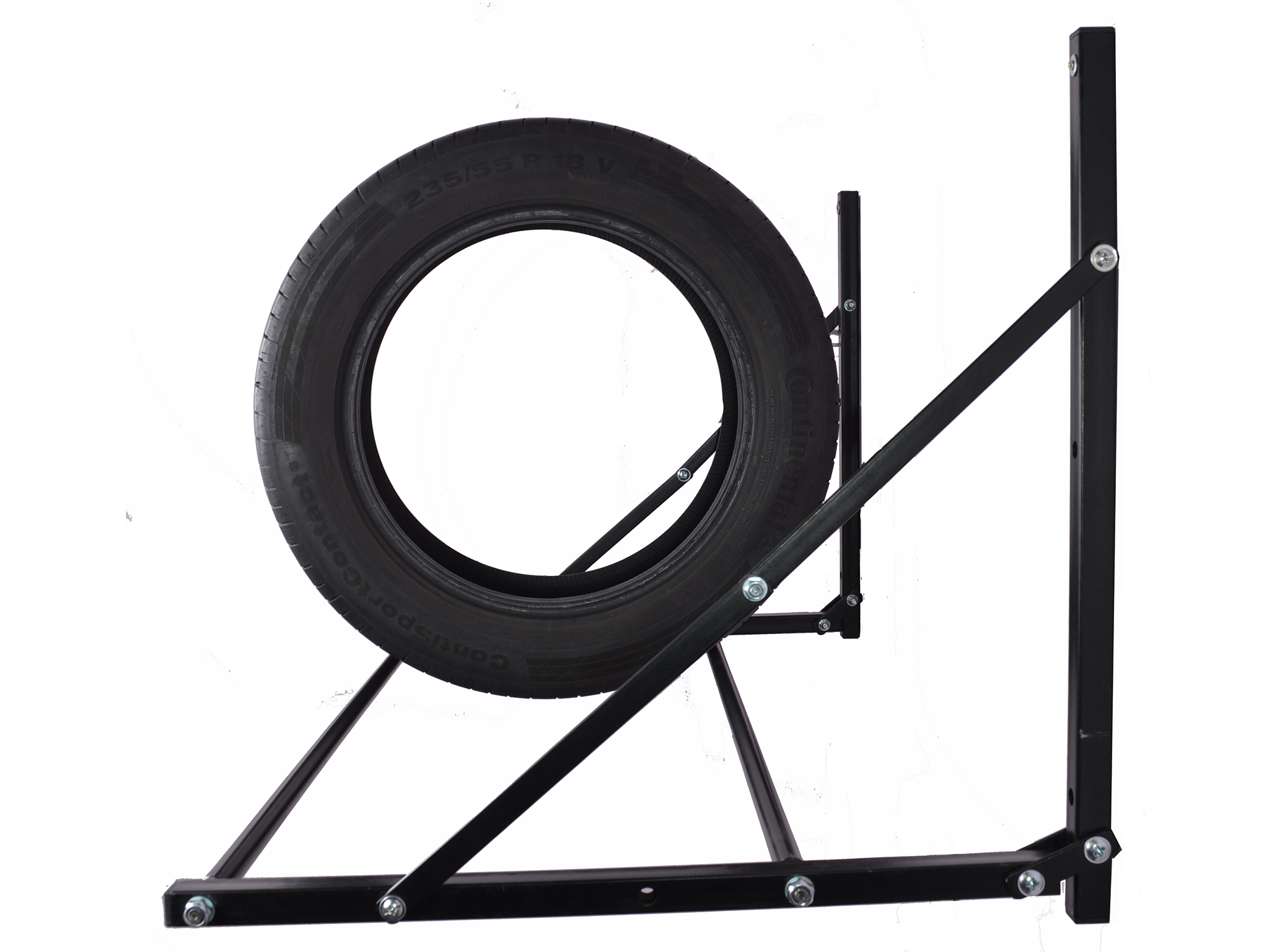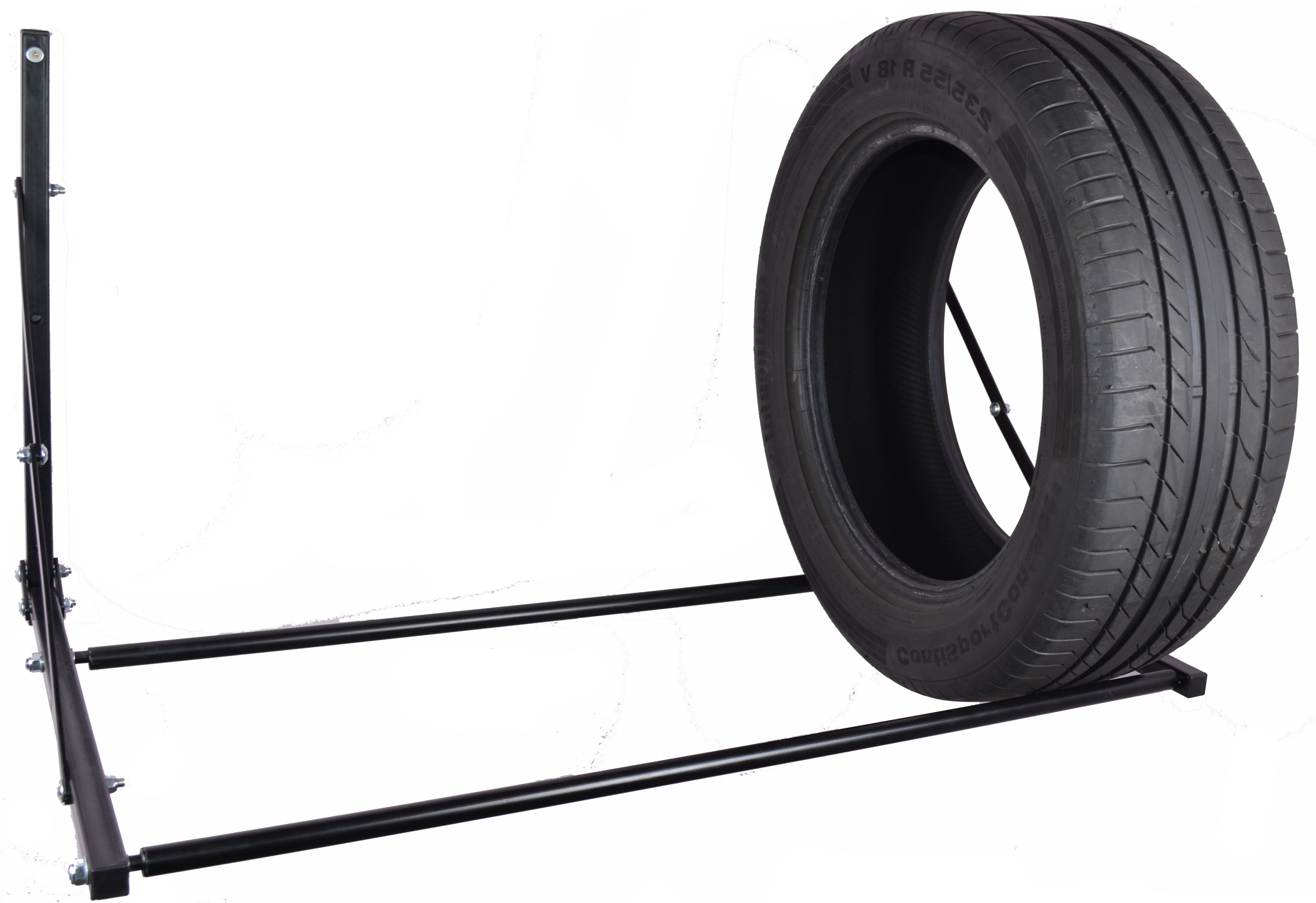 Міцна полиця для зберігання до 6 шин. Зберігання шин у такому положенні не порушує їх параметри та властивості. Ідеально підходить для зберігання шин у домашніх та гаражних умовах. Телескопічні трубки дозволяють регулювати ширину отвору від 105 см до 155 см. При необхідності компактно складається та фіксується гаком.