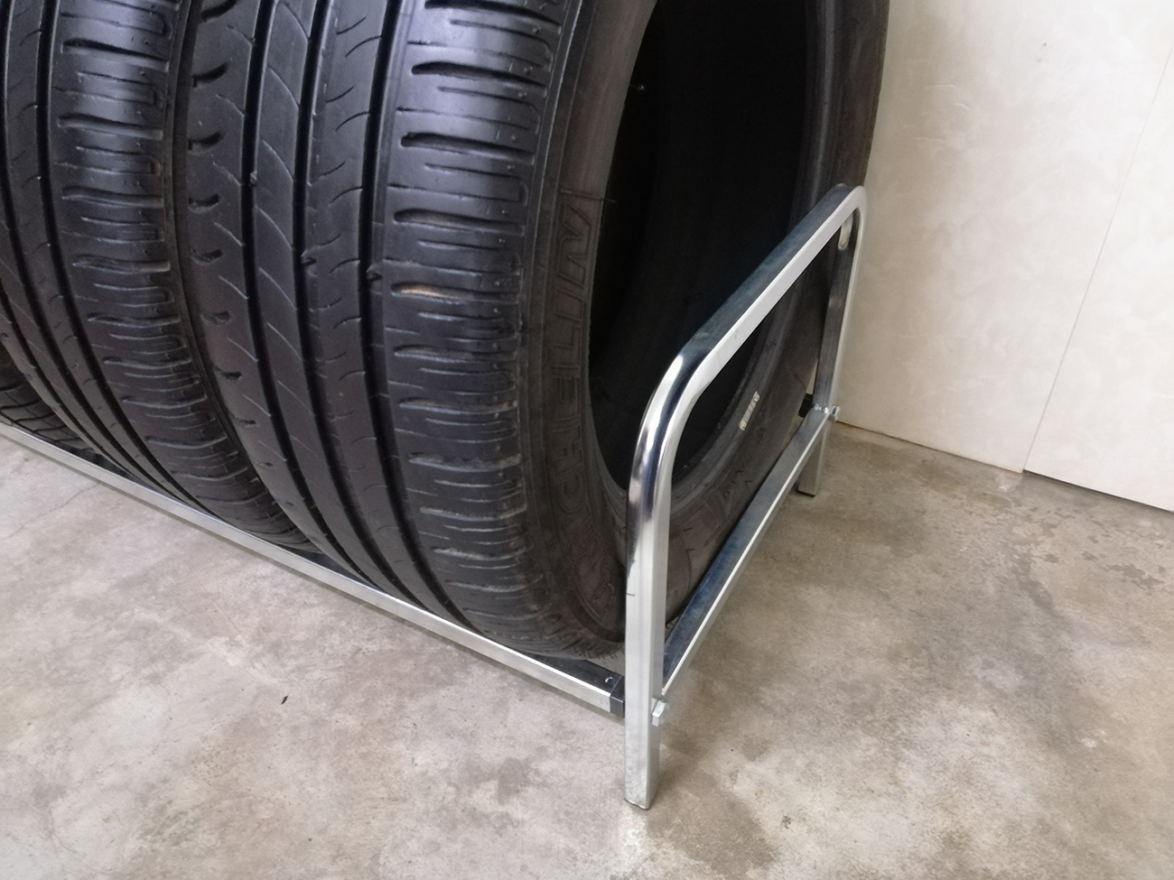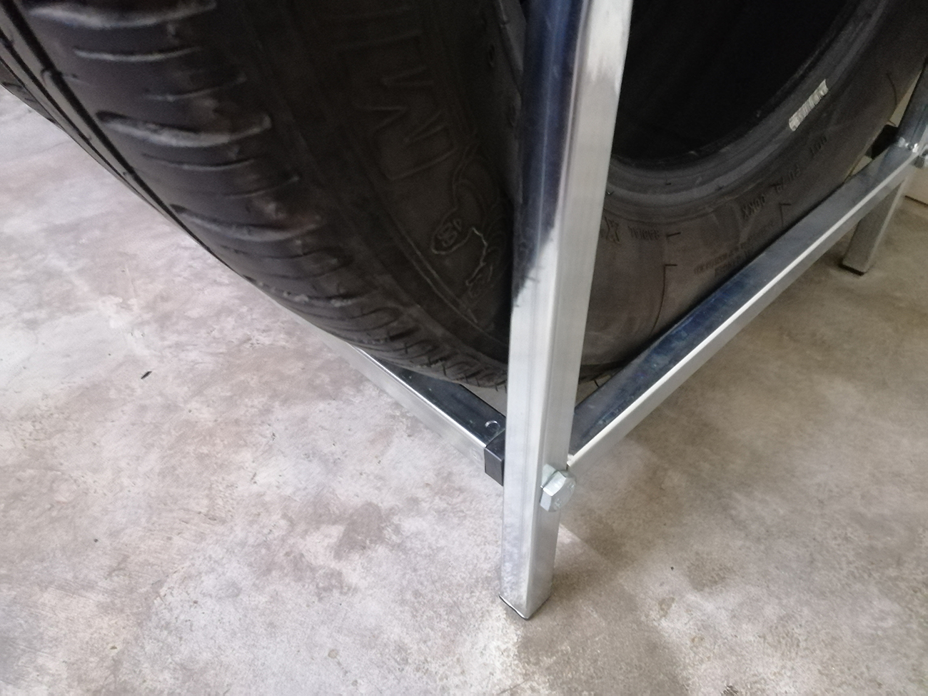 Міцна конструкція з оцинкованого сталевого профілю 20x20x1,5 мм гарантує надійність конструкції. Зберігання шин у такому положенні не порушує їх параметри та властивості. Ідеально підходить для зберігання шин у домашніх та гаражних умовах.
