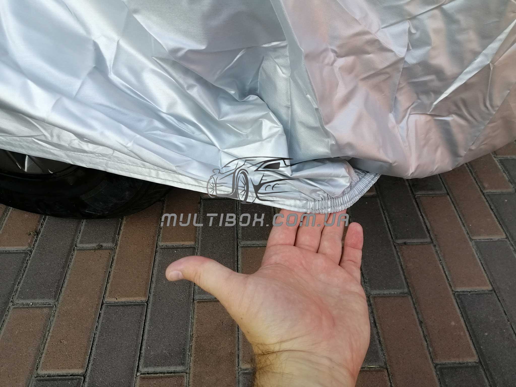 Автомобільний тент із водонепроникного матеріалу. Має кишені для дзеркал та блискавку для доступу до пасажирських дверей. По краях тенту вшита еластична гумка, що дозволить щільно утримувати тент на автомобілі. Для збільшення міцності, тент прошитий подвійним рядком.