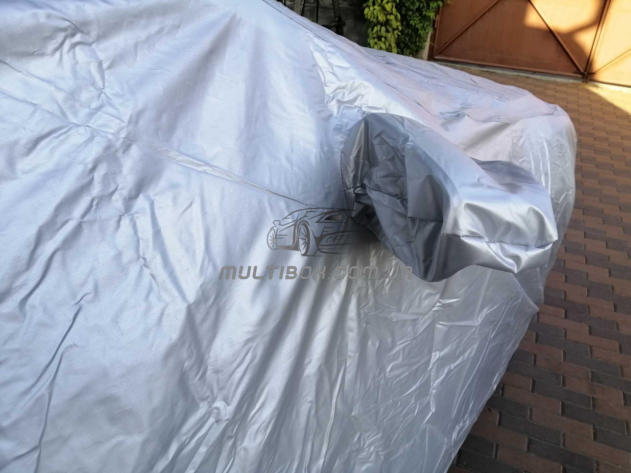 Поверхня тенту сіра, завдяки чому автомобіль не нагрівається зовні та всередині. Чохол відрізняється простотою та надійністю в експлуатації. Виготовлений тент із міцного та водовідштовхувального поліестеру.