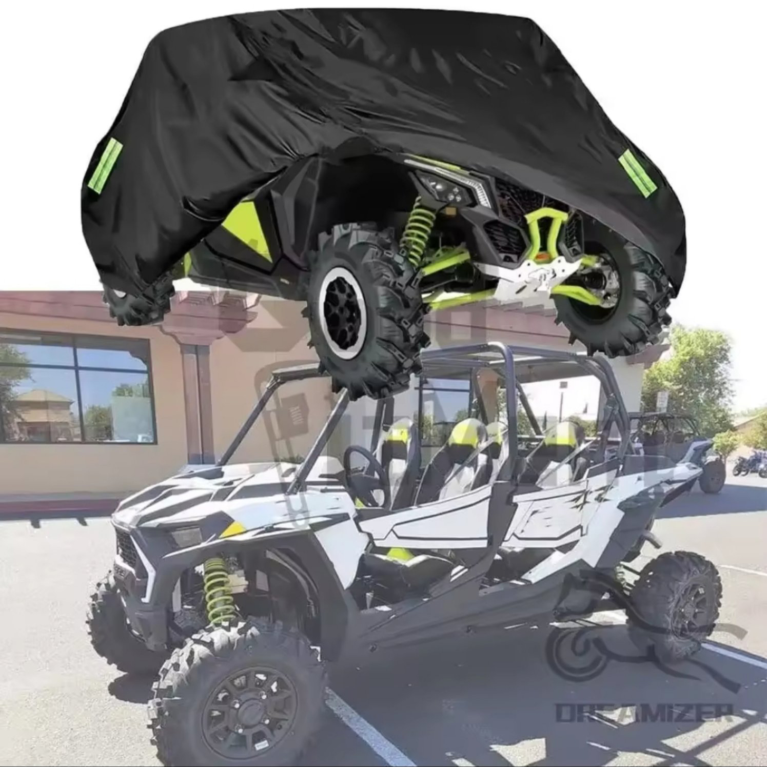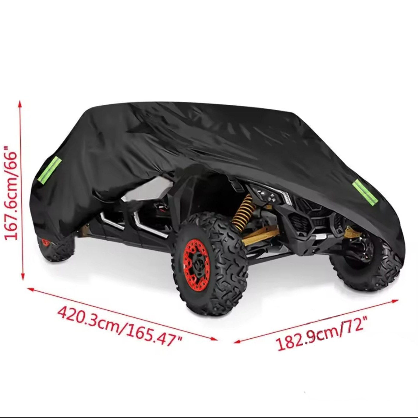 Чохол для баггі виготовлений із водонепроникної, міцної, вітрозахисної та стійкої до ультрафіолетового випромінювання тканини.