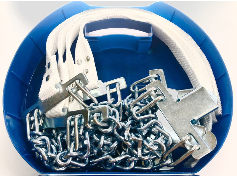 Ланцюги можна встановлювати на автомобіль, що вже забуксував, без домкрата. Застосування міцної поліамідної стропи та надійного затиску дозволяє витримувати високі навантаження.