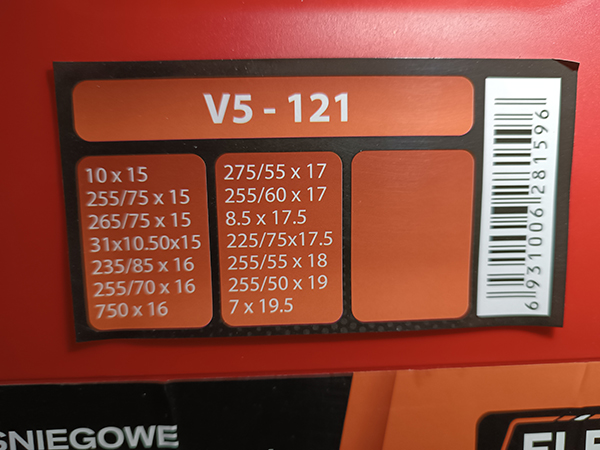 10-15, 31x10.50-15, 255/75-15, 265/75-15, 750-16, 235/85-16, 255/70-16, 255/60-17, 275/55-17, 8.5-17.5, 225/75-17.5, 255/55-18, 255/50-19, 7-19.5