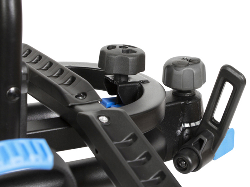 - Велокріплення спроектоване з можливістю нахилу, що дає змогу отримати доступ до багажника автомобіля, не знімаючи велосипеди.
