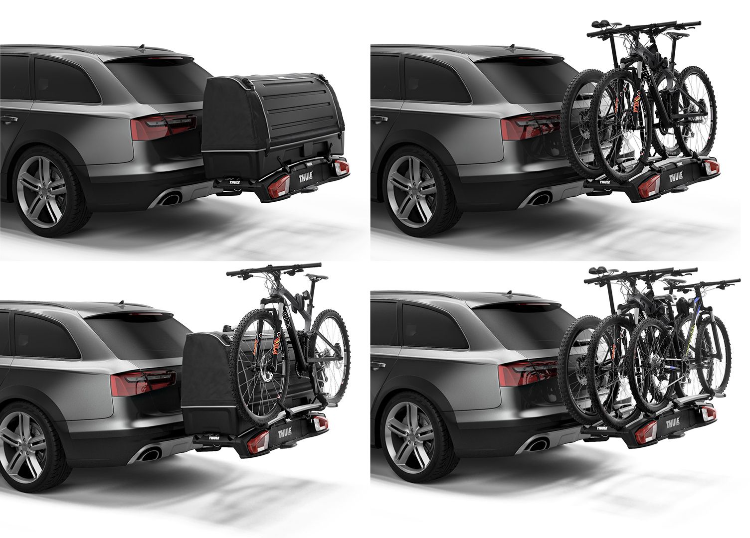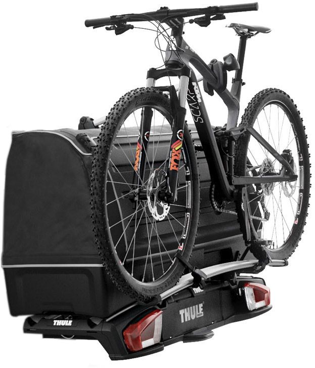 • Бокс легко встановлюється безпосередньо на встановлений на фаркоп велосипедний багажник Thule VeloSpace XT без використання інструментів