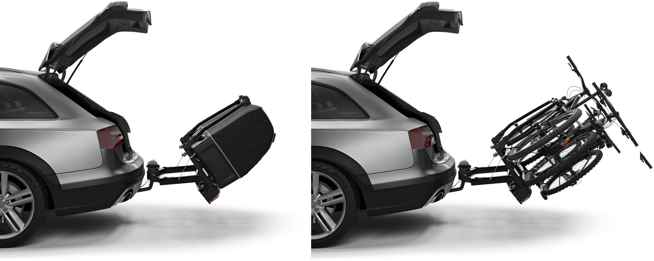 • Тримач рами Thule BackSpace XT Bike Arm і перехідник Thule VeloSpace XT дозволяє перевозити один велосипед як додаток до багажного боксу Thule BackSpace XT