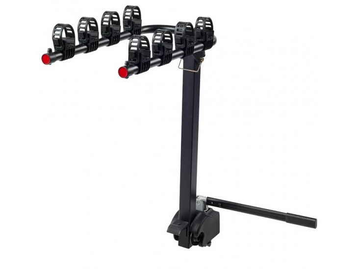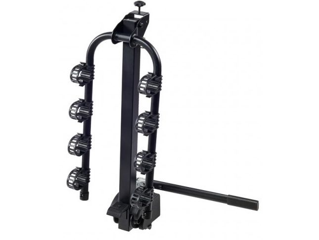 Складане кріплення для перевезення 4-х велосипедів на фаркопі. Має функцію швидкої фіксації на кулі фаркопа та зручну функцію нахилу за допомогою педалі. Закривається на замок на фаркопі.