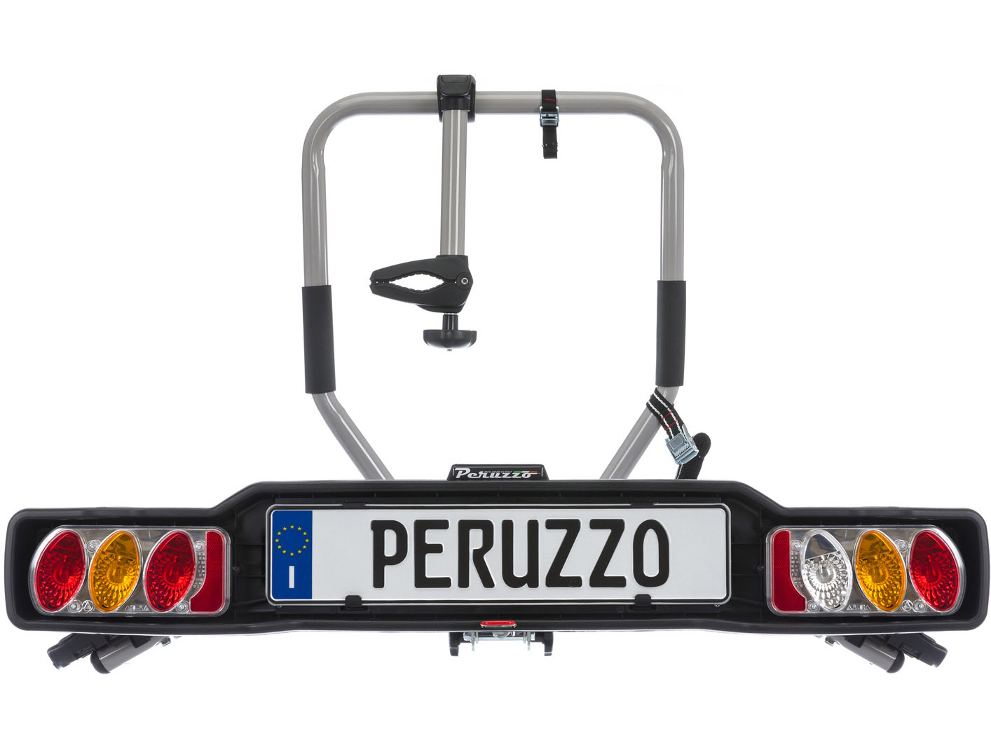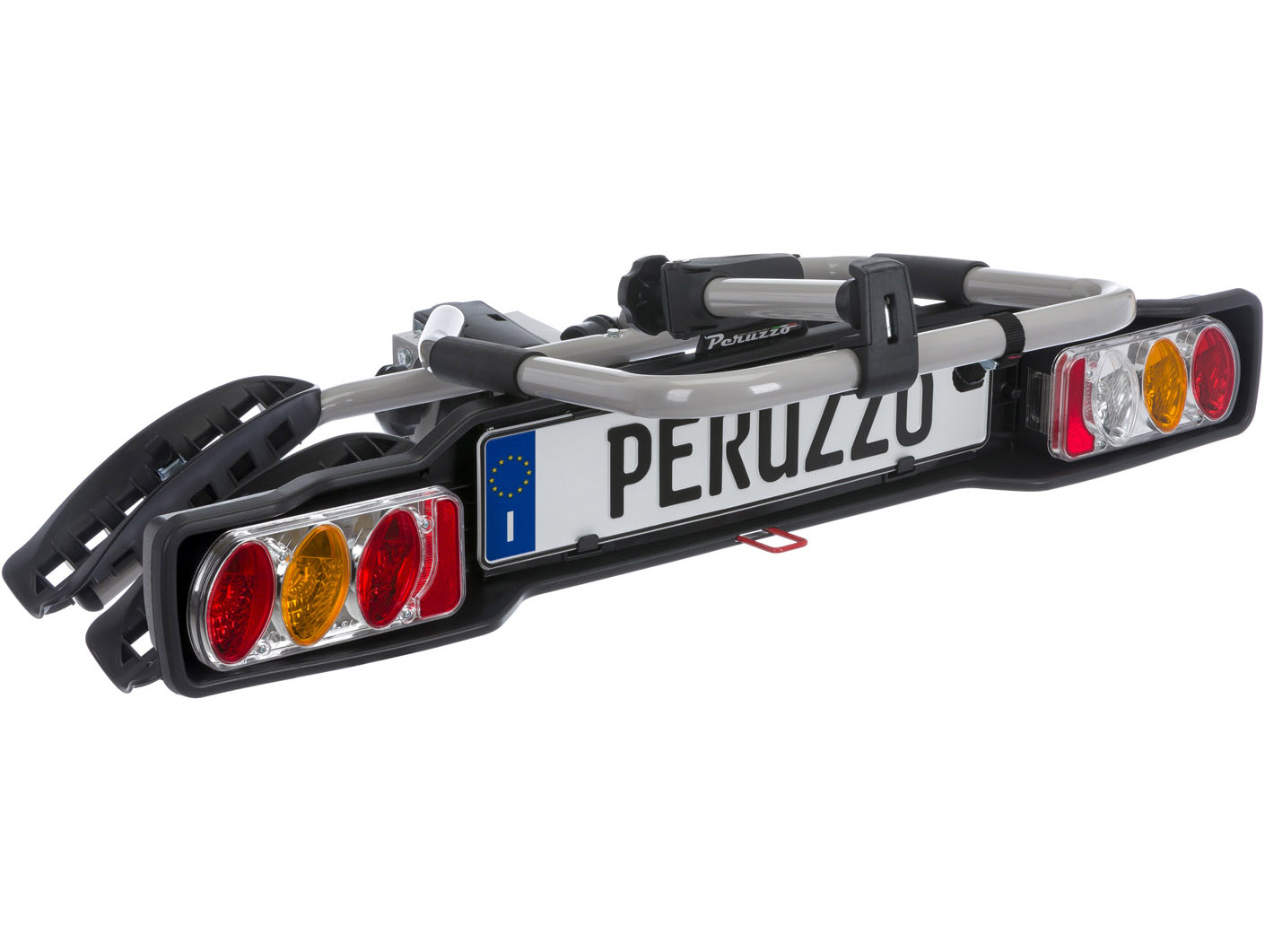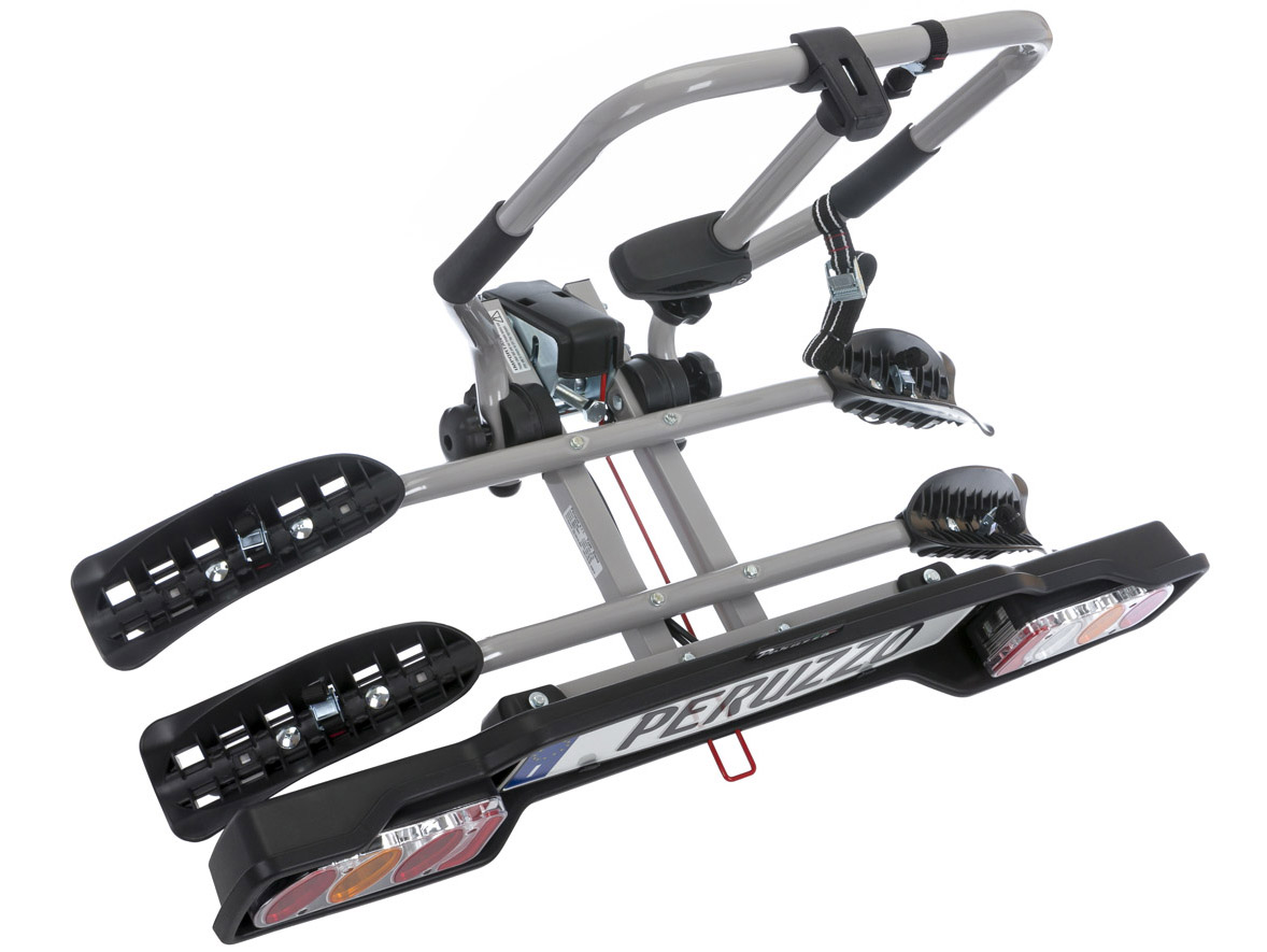 Велосипедне кріплення на причіпний пристрій Peruzzo Siena 2 для перевезення 2 велосипедів. Має виносну панель із габаритними вогнями та місцем для номерного знака. Велосипеди кріпляться за колеса та за раму одночасно. Електричний роз'єм на 13 контактів. Має функцію нахилу. Простий монтаж.