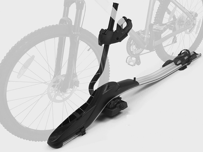Discovery ексклюзивне кріплення для велосипедів, розроблене інакше, ніж традиційні кріплення, що значно спрощує транспортування велосипедів. Конструкція утримувача встановлює новий стандарт перевезення велосипедів. Базовим елементом є спеціальний профіль, де велосипед може стояти без опори. Таким чином, у нас вільні обидві руки, і ми можемо закріпити шини та раму, знаючи, що велосипед не перекинеться. Як тільки кронштейн кріплення рами рухається до рами велосипеда, він автоматично прикріплюється до багажника на даху.