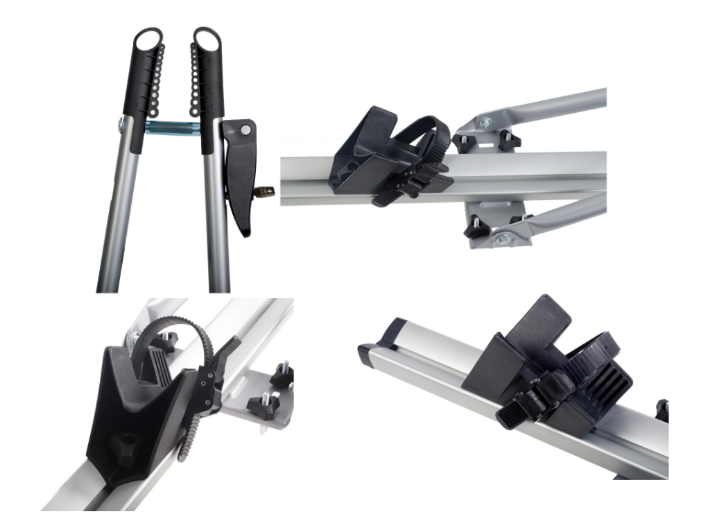 Преміум велокріплення від польського виробника Amos. Велосипед закривається на замок. Amos Tour складається зі сталевого тримача рами та алюмінієвої направляючої. Має потужні, зручні майданчики для встановлення коліс і пластикові фіксувальні ремінці.