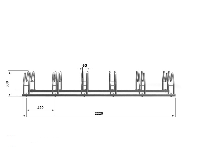 Двостороння паркувальна стійка, призначена для розміщення велосипедів усіх типів і розмірів, а також тих що оснащені дисковими гальмами.