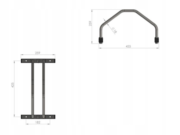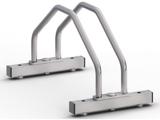 Двостороння велопарковка для одного велосепеда. Виготовлена із оцинкованої сталі. Кріплення в комплекті.